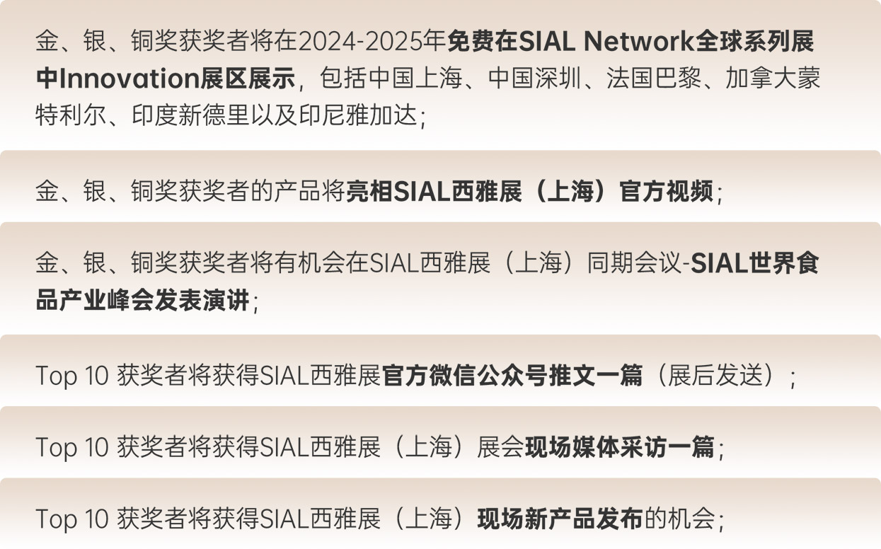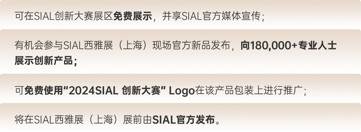 “2024 SIAL Innovation創新大賽”參賽報名線上通道開放時間延期至4月30日,還未報名參賽的2024 SIAL 西雅國際食品和飲料展覽會(上海)展商,快來報名,抓住向全球展示創新產品的機會!即刻點擊下方“快速報名參賽”按鈕,進入“展商會員中心”后,點擊“上海創新大賽”添加參賽產品信息。