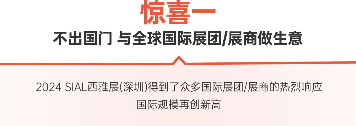作為覆蓋全品類的華南食飲交易展,2024 SIAL西雅展(深圳)預計吸引全球43個國家和地區的1,500+展商參展和來自全球70+國家和地區的67,000+專業人士觀展。點擊馬上預登記,展會現場您將收獲超出預期的驚喜。