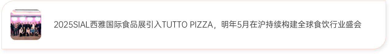 2025 SIAL西雅展(上海)將引進Tuttopizza。Tuttopizza首次亮相亞洲,是SIAL西雅展(上海)國際化道路上的又一里程碑事件。