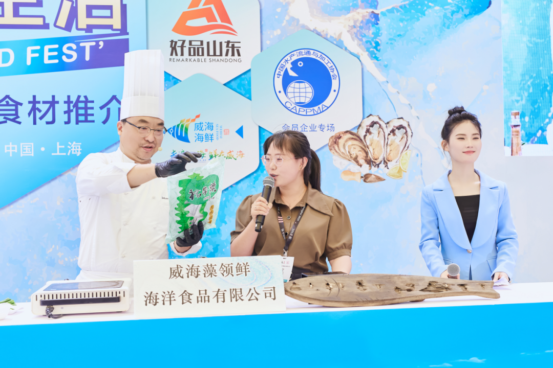 活動現(xiàn)場,榮成泰祥食品股份有限公司、威海市宇王集團(tuán)有限公司、山東海之寶海洋科技有限公司、威海金鵬水產(chǎn)品有限公司、威海旺和食品科技有限公司、威海藻領(lǐng)鮮海洋食品有限公司六家公司的代表先后上臺從品牌故事、產(chǎn)品特點、應(yīng)用場景、烹飪要點等方面進(jìn)行了分享,同時圍繞產(chǎn)品與廚師進(jìn)行場景式科普互動,很好地加深了觀眾對品牌的記憶和認(rèn)知,口感鮮美、營養(yǎng)豐富的威海海鮮贏得了駐足采購商的一致好評。借助威海海鮮品鑒會,多家國內(nèi)著名連鎖企業(yè)對威海市“榮成海帶”等產(chǎn)品青睞有加,并達(dá)成多項采購意向,計劃近期赴威進(jìn)一步考察洽談,參展企業(yè)與國內(nèi)外近百家采購商建立了聯(lián)絡(luò)渠道。