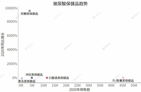 在玻尿酸保健品領(lǐng)域,片/膠囊類型保健品一騎絕塵,口服液類、沖飲類和果凍類保健品萎靡不振,倒是軟糖類保健品突出重圍,再一次成為了熱門新貴。