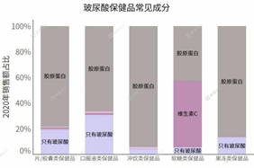 與此同時,在玻尿酸保健品當(dāng)中,玻尿酸常常是與其他成分一起出現(xiàn)的,尤其是膠原蛋白,出現(xiàn)頻率非常高。對于單獨補充玻尿酸的保健品,消費者并沒有很心動。與其他成分強綁定,才能更為消費者接受。
