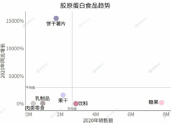 可以發(fā)現(xiàn),除了餅干薯片外,其他產(chǎn)品大多是比較水潤、粘稠或有彈性的,加工過程較為健康,與膠原蛋白成分的形象比較類似。