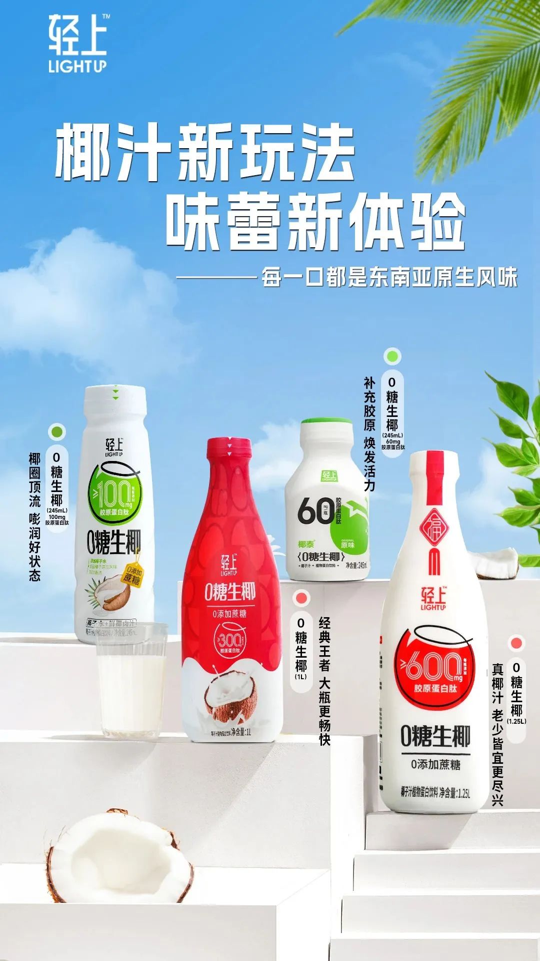 既要健康、要0糖,又要好喝、要營養(yǎng),面對更多元化的消費(fèi)需求,椰泰椰汁全新推出輕上0糖生椰。據(jù)悉,新品精選東南亞進(jìn)口陽光鮮椰生榨,主打“0添加蔗糖”,添加膠原蛋白肽,好喝無負(fù)擔(dān)。在容量設(shè)計(jì)上,0糖生椰有245ml、1L和1.25L多種規(guī)格,增加了在多種飲用場景的便利性和社交屬性。