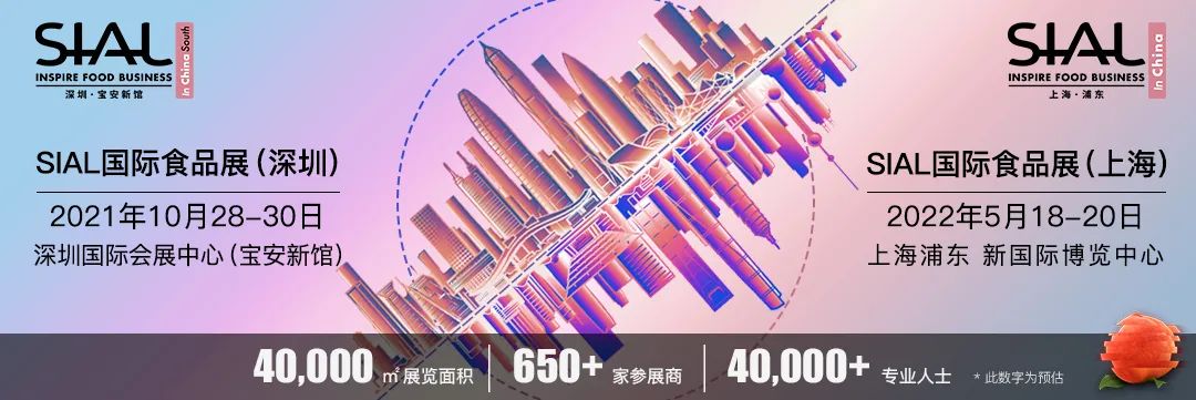 SIAL國際食品展(深圳)將于2021年10月28-30日在深圳寶安新館舉辦,展會規模將達到4萬平米,展商數量將達到650+,專業人士將達到40,000+。