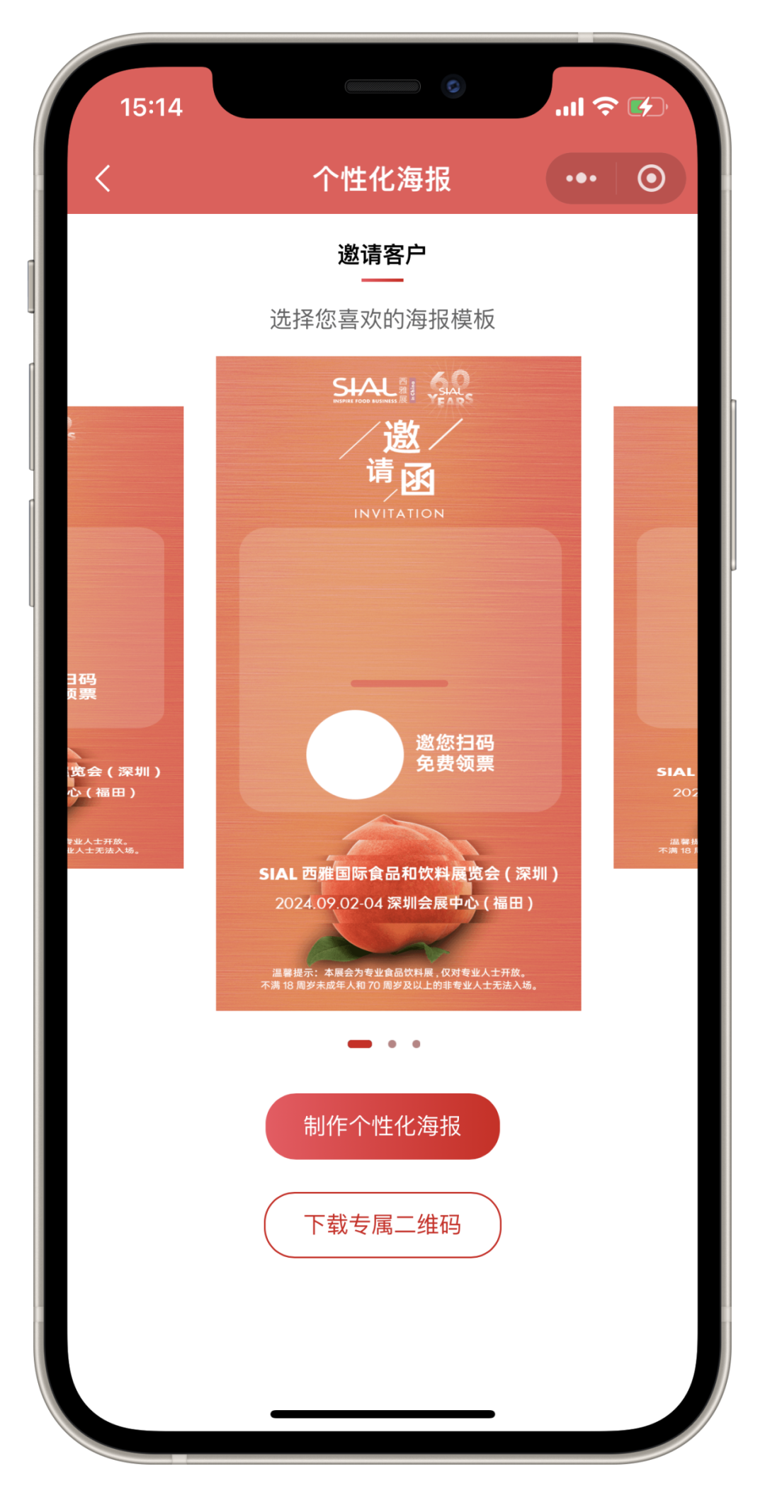 如果您不是展商也不用擔心,作為專業觀眾的您可以參加SIAL 在線團長計劃,組團邀約享好禮!掃碼進入小程序頁面后可以直接點擊【邀請好友】