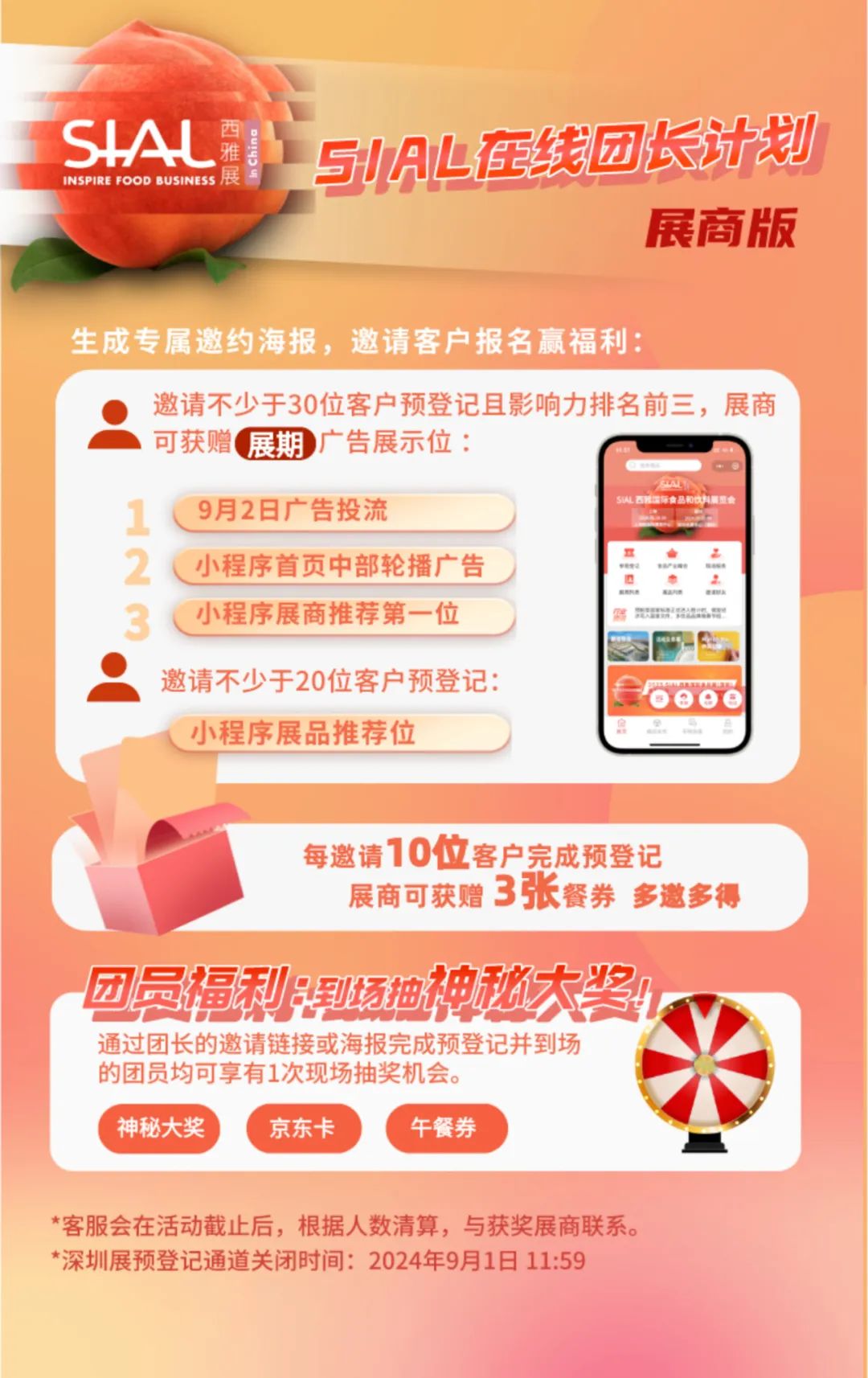 禮品包括神秘大獎、京東卡、午餐券、SIAL 60周年限量帆布袋