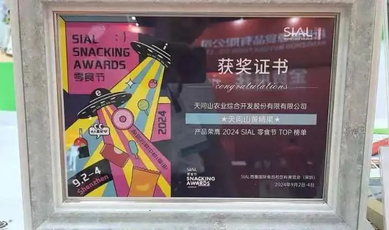 恭喜天問山生物科技股份有限公司黃精果榮膺2024 SIAL西雅國際食品展(深圳)零食節 TOP榜單