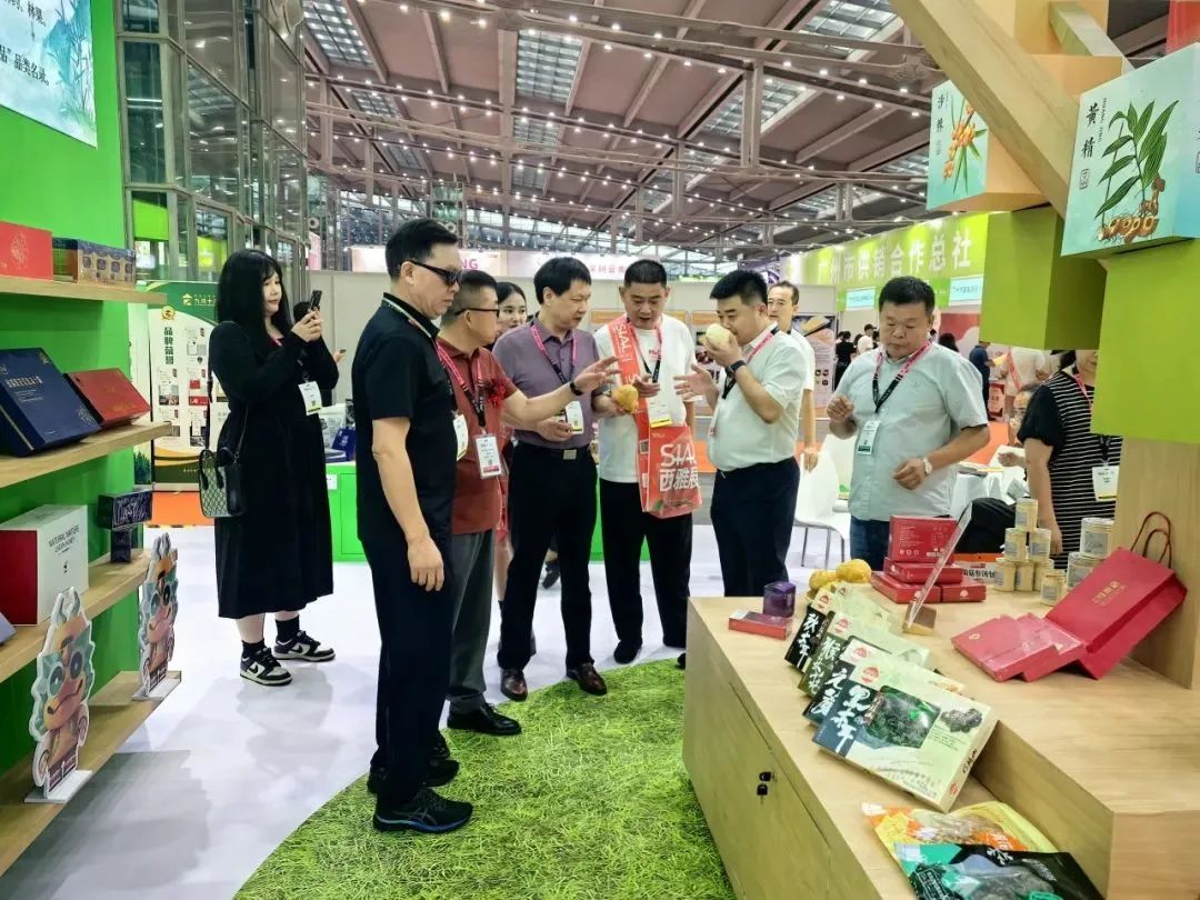 展會現場,黑龍江森林食物“九珍十八品”盛裝亮相。森林堅果、森林養殖、森林茶飲、森林漿果、森林蜂產品、森林食用菌、森林藥食同源、森林白樺汁、禮盒專區9大專區展示了九珍十八品49家入圍企業160余款產品。其中14家企業(黑龍江中穆沙棘產業有限公司、黑龍江佑康食品有限公司、黑龍江珍珠山綠色食品有限公司、黑龍江紫基食品有限公司、黑龍江北貨郎森林食品有限公司、黑龍江蜂卿堂生物科技有限公司、伊春伊蜜蜂業有限公司、黑龍江天錦食用菌有限公司、黑龍江省北安農墾天運山產品有限公司、黑龍江金科沙棘有限公司、伊春市鑫旺山特產品開發有限公司、黑龍江小慈生態農業發展有限公司、黑龍江省雨薔生物科技發展有限公司、天問山生物科技股份有限公司)董事長或總經理或相關銷售負責人共同赴深圳參加此次展會的推介。